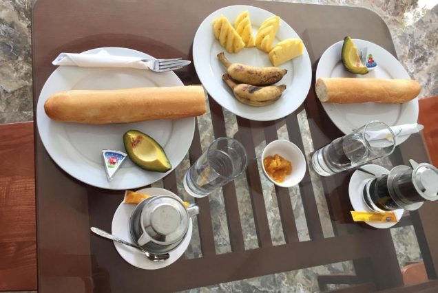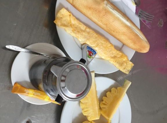 Меню: свежие фрукты, банановые блины, яичница по-вьетнамски, хлебобулочные изделия, смузи, травяной чай, кофе любого формата.