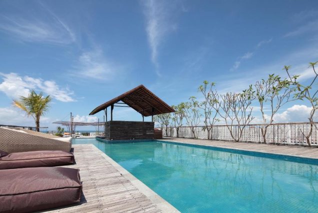 Бар у бассейна на крыше. Виды с крыши. Расположение отеля в оживленном районе города удобно для посещения магазинов, ресторанов, проката скутеров и пляжей. Доброжелательный и гостеприимный персонал. Размер бассейна на уровне 1 и его глубина. Персонал, который обслуживал нас в баре у бассейна на крыше. Чистота в отеле. Персонал, который сопровождал нас в отель и из отеля, когда мы заказывали машину, чтобы отвезти нас куда-то, или когда мы въезжали и выезжали из отеля на скутере, был отзывчивым, улыбчивым и производил положительное впечатление. Выбор блюд на завтрак был очень вкусным. Зона отдыха для завтрака была прекрасной и постоянно содержалась в чистоте. Благо, лифты были и работали. Кондиционер в номере творил чудеса.
