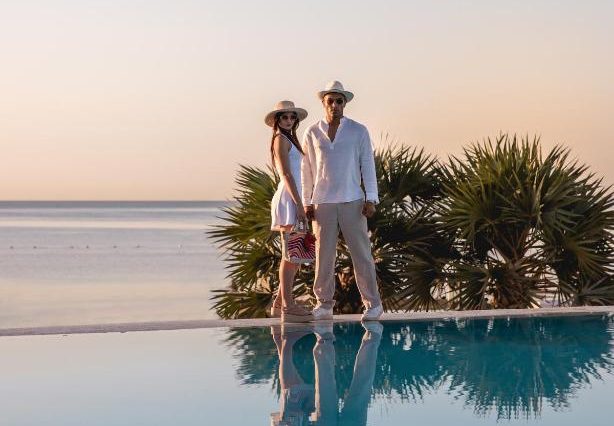 Локации для фото: мостики над бассейнами, ресторан с видом на закат, пляж у пальм