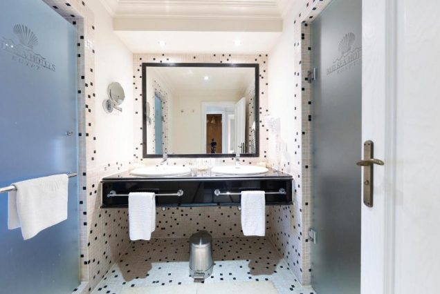 Санузел: ванна и душ, двойная раковина, халаты и тапочки