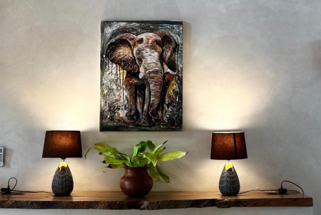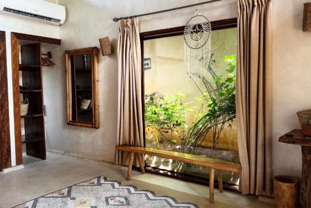Интерьер: современный стиль с элементами африканского декора, натуральные ткани, дерево и камень