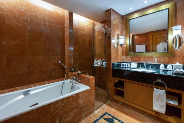 Санузел: ванна с гидромассажем, душевая кабина, двойная раковина, премиум косметика