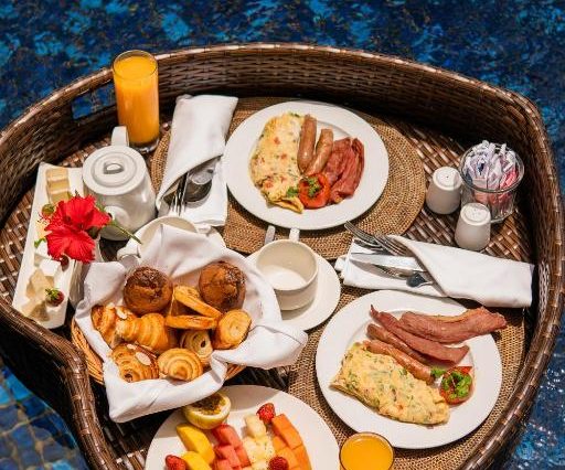 Индивидуальная подача: завтрак можно заказать в виллу, на террасу или к бассейну — в том числе floating breakfast
