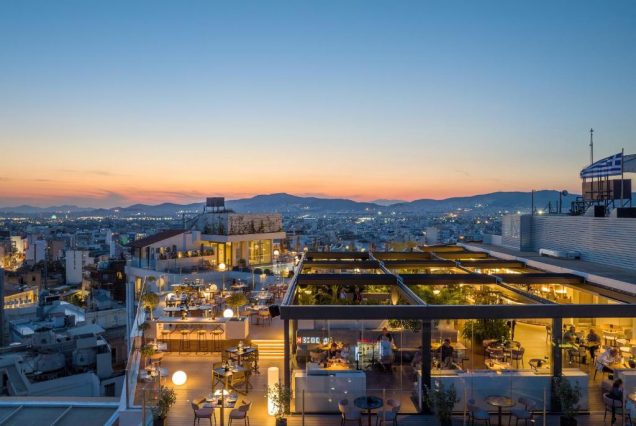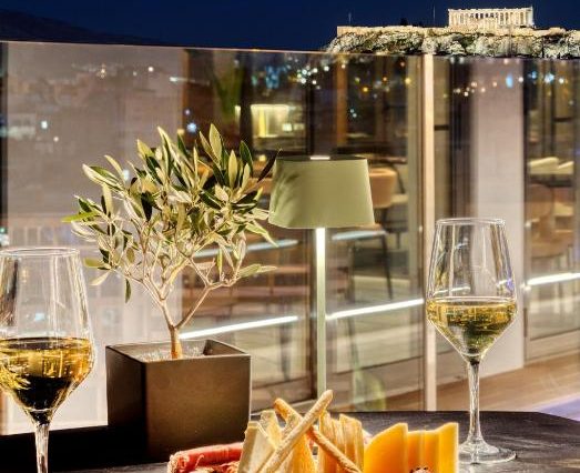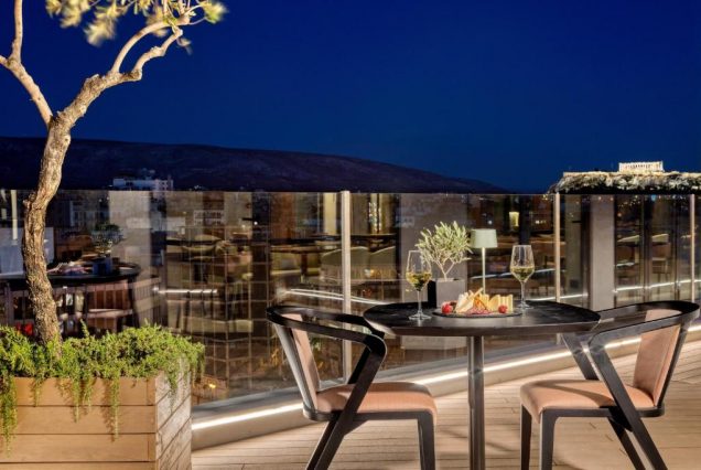 Локации для фото: rooftop-бассейн с видом на Афины, романтические ужины с панорамой, террасы с фонарями, внутренний двор с растениями