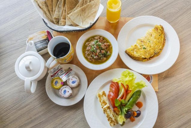 — Завтрак с блюдами восточной кухни и свежими фруктами