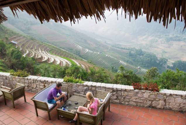 — Отдых на террасе с видом на горные рисовые террасы и облака