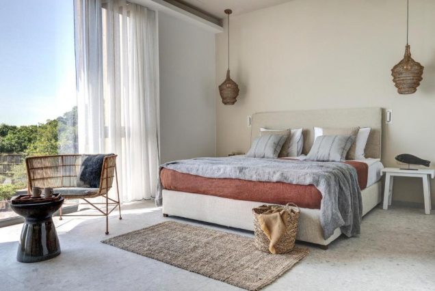Интерьер: современный стиль с акцентом на светлые тона, натуральные ткани, экологичные материалы