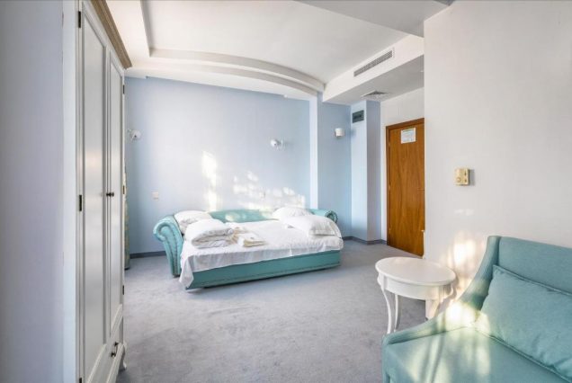 Оснащение: Smart TV, Bluetooth-колонка, кофемашина Illy, чайный набор, мини-бар, сейф, гладильные принадлежности