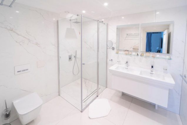Санузел: дизайнерская ванна, душ, косметика класса люкс