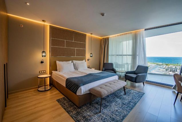 Wave Resort — Ultra All Inclusive — это место, где встречаются безмятежность и динамика морского отдыха. Утро начинается с лёгкого прибоя, рассветного света и свежего воздуха, напоённого ароматами моря и сада. Вы просыпаетесь в просторном номере с видом на бескрайнюю гладь Чёрного моря, наслаждаясь тишиной и уютом. Здесь каждый день наполняется радостью: неспешный завтрак на террасе, купание в бирюзовых бассейнах, прогулки по песчаному пляжу и отдых в тени пальм. Wave Resort создан для тех, кто ценит сервис уровня luxury и при этом хочет провести отпуск активно, ярко и разнообразно. Панорамные окна, натуральные материалы, авторский интерьер и продуманное пространство позволяют забыть о спешке и перезагрузиться. Вечера наполняются магией — гастрономические ужины, музыка, огни и шорох волн под звёздным небом. SPA-процедуры, йога и программы восстановления делают отдых не только приятным, но и оздоравливающим. Wave Resort — это курорт нового поколения, где сочетаются расслабление, впечатления и забота о каждом моменте. Здесь вы почувствуете полное единение с морем, природой и собой.