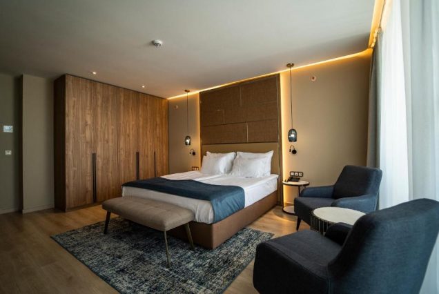 Оснащение: Smart TV, кофемашина, чайный набор, мини-бар, сейф