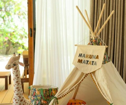 Для семей: есть семейные виллы и дополнительные кровати, по запросу — детская кроватка, стульчик, няня, специальное меню.