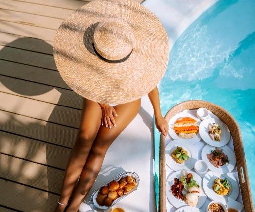 Индивидуальная подача: можно заказать завтрак в виллу, на террасу или к бассейну — в том числе floating breakfast.